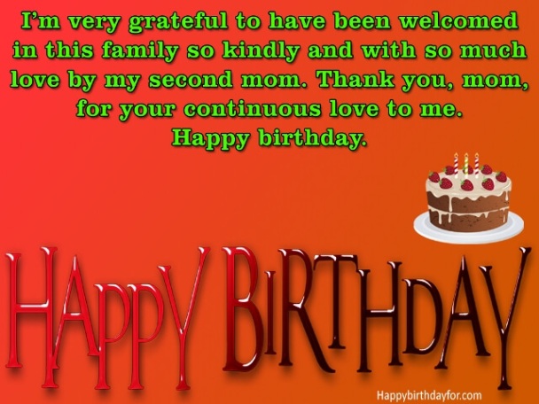 Dear mother-in-law, I hope all my wishes that I sent to you from the core of this heart come true very soon. I have been and will always respect you as my mother. A very happy birthday to you.